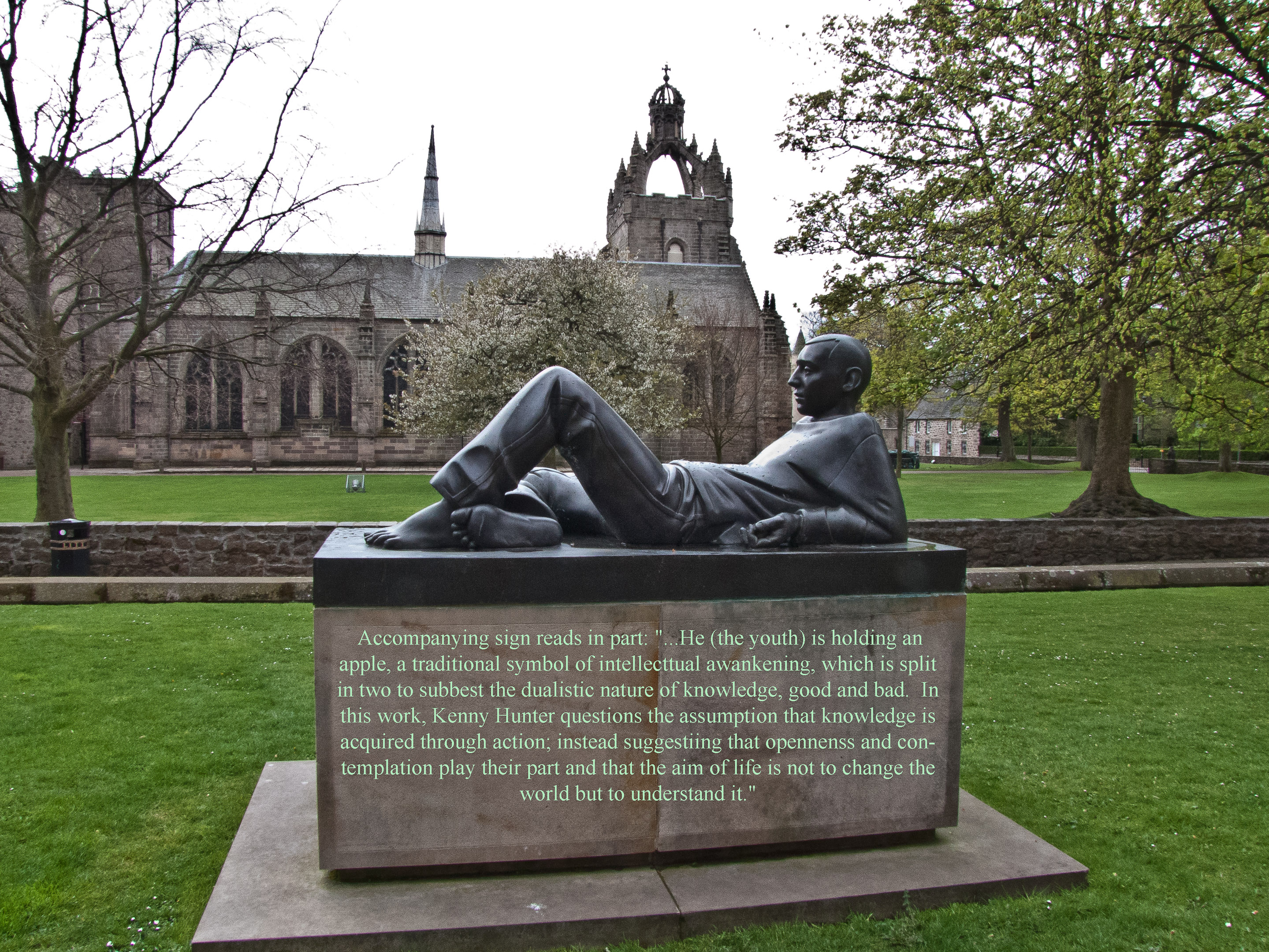 "Youth with a Split Apple" 2005, by Kenny Hunter.
