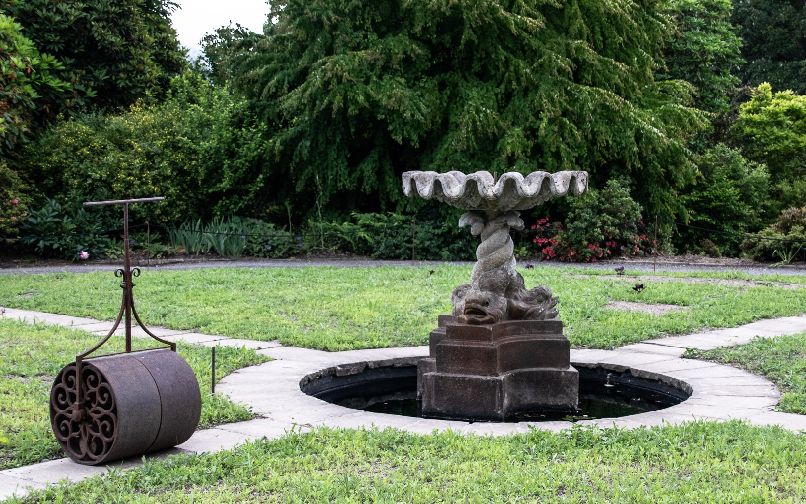 The Bath, a Victorian ornamental pond, renovated and transformed into an exotic poolside garden at Bodnant Garden in Wales