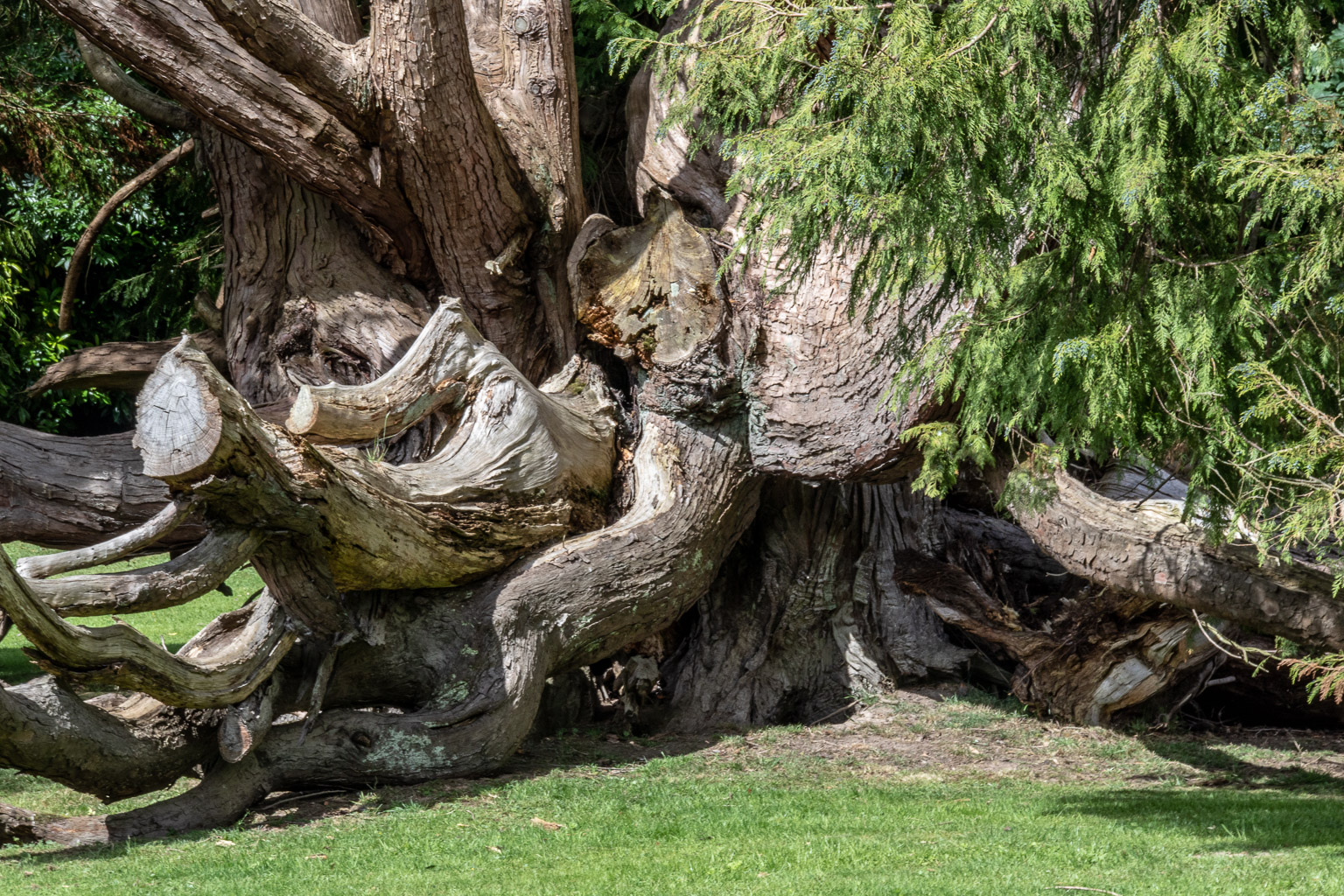 Old Tree sculpted by nature and man, Gwydir Castle, Conwy valley, Wales
