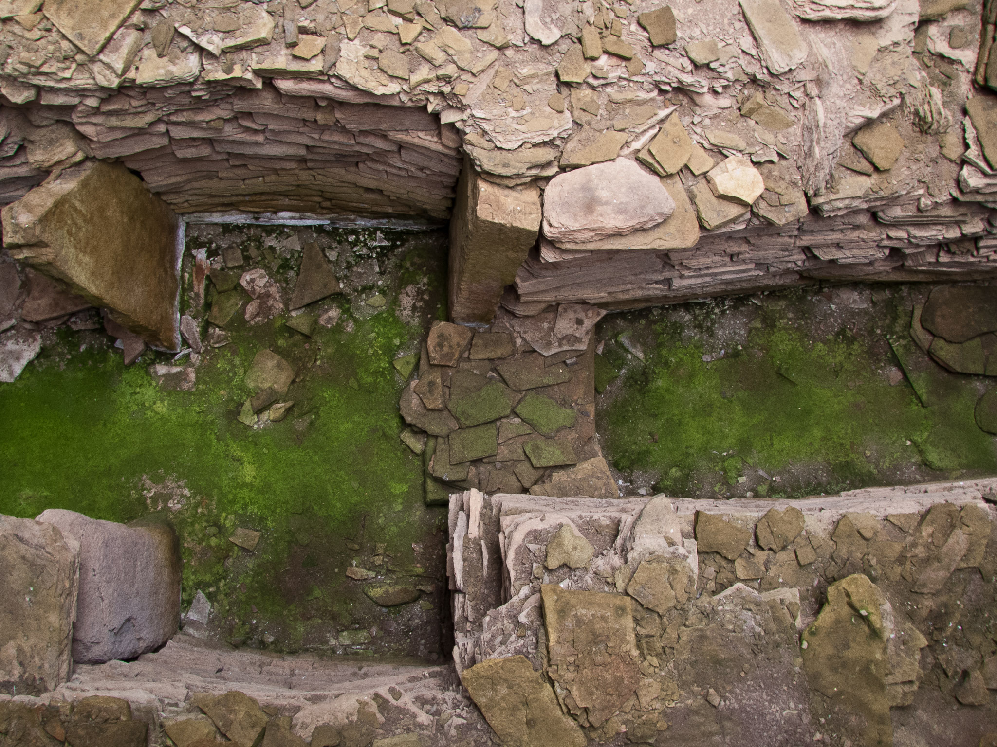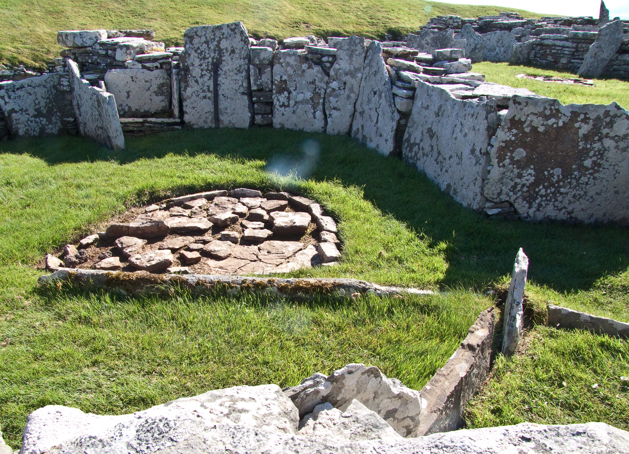Midhowe Cairn: Neolithic chambered cairn located on the south shore of the island of Rousay, Orkney, Scotland . A stalled burial chamber, thought to date from about 3500 BCE.