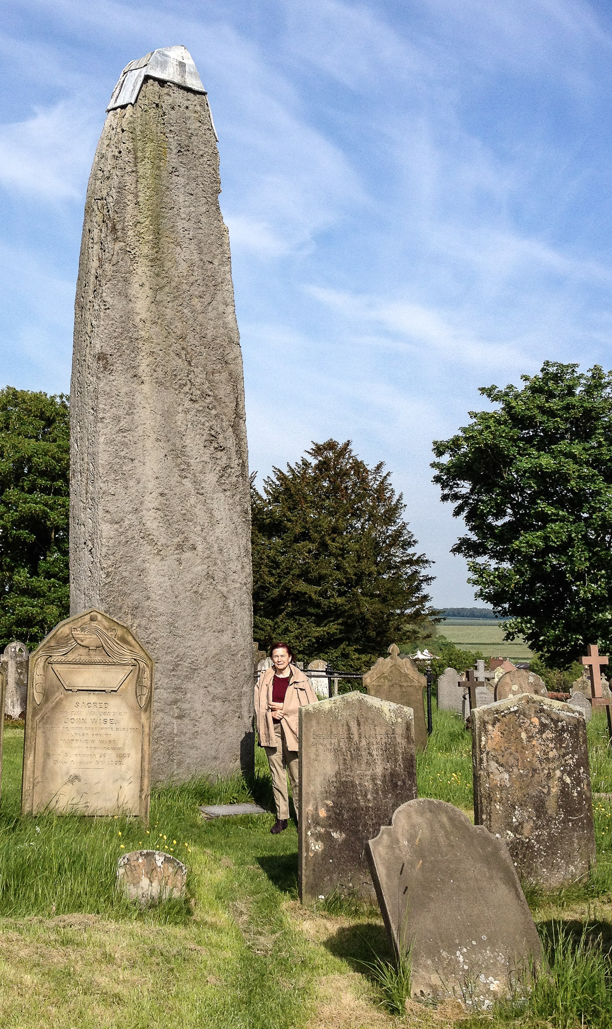 Late Neolithic/Early Bronze Age Rudston Monolith stone was erected circa 1600 BC.E Almost 26ft high, its depth into the ground may be as much as its height! It is next to the Rudston Church of All Saints, Yorkshire, England.