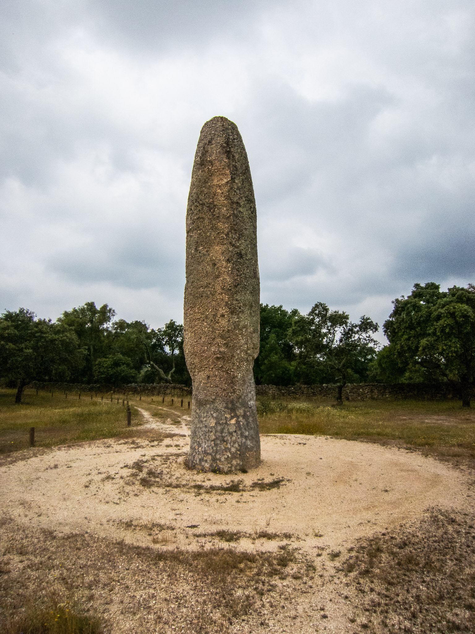 Megalithic Menhir de Meade, Parque Megalitico dos Coureleiros, Castelo de Vide, Portalegre district, Alentejo, Portugal. This menhir, the largest in the Iberian Peninsula, stands just over 7m high with a 1.25m girth and illustrates the importance of the area in prehistoric times.